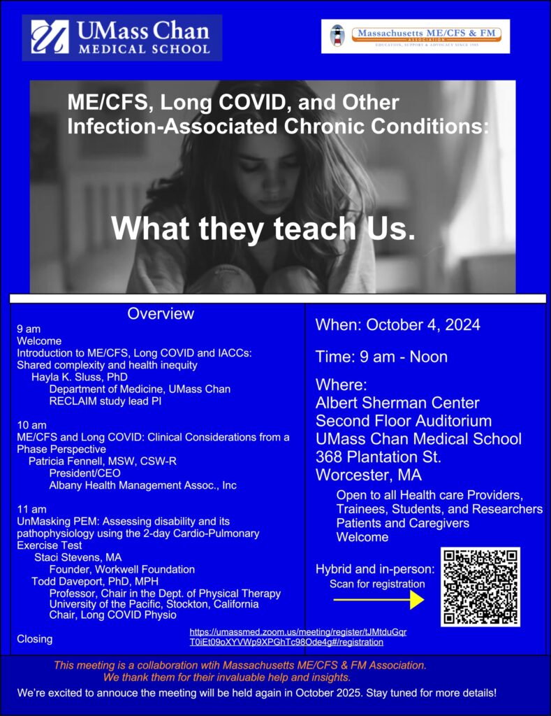 The symposium, held in partnership with the Massachusetts ME/CFS & FM Association, features three presentations: